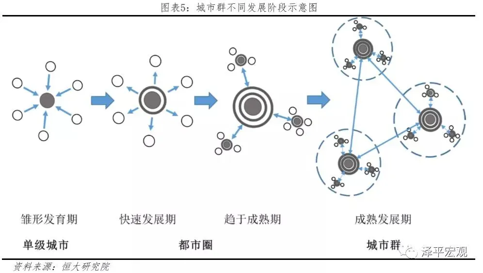 4)在成熟发展阶段,多个都市圈基础设施互联互通、产业合理分工协作形成城市群。