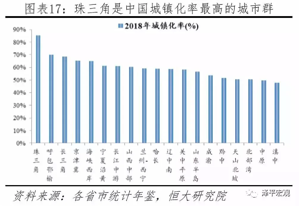 1)2018年珠三角人均GDP达12.9万元、居中国五大城市群首位,城镇化率85.3%、中国最高,将与港澳“拼船出海”,打造国际一流湾区和世界级城市群。