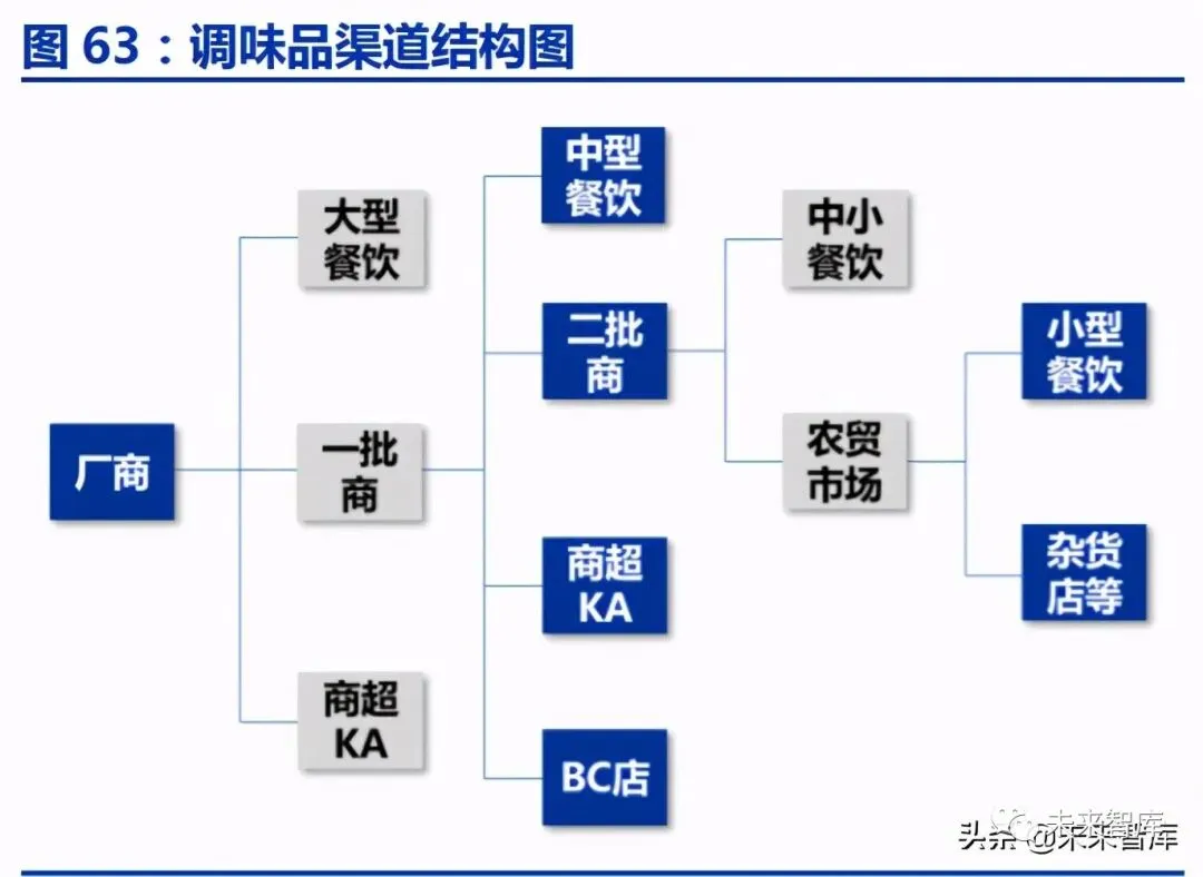 调味品餐饮端、家庭端特点各不相同。从选购决策者来看,餐饮以主厨为主,采购员 为辅,厨师最看重产品品质,包括口味、稳定性以及安全性;采购员则基于厨师的选择, 对产品成本进行控制。餐饮端采购量大,对产品粘性较强,复购较为稳定,不会冒风味变 化的风险而更换调味品。餐饮端的消费行为总体较为理性,对产品价格的敏感度随餐厅定 位上升而下降。在家庭零售端,采购主体为家中掌勺者,对调味品品质的敏感度偏弱,更 注重品牌效应以及终端开展的促销活动,相对产品粘性较低,偏冲动型消费。餐饮端的购 买路径主要通过经销商、农贸批发或企业直接对接,由于量大且复购稳定,具有低价低费 率的特点。另一方面,家庭零售端的购买路径主要通过商超等现代流通渠道,品牌竞争激 烈,呈现高价高费率的特点。在调味品种类的使用方面,餐饮渠道具有引领性,例如味精、 鸡精鸡粉、蚝油、高鲜酱油、复合调味品,均是餐饮渠道率先大范围使用,在厨师的专业 性及带动效应之下,家庭端跟随使用。因此,占据餐饮渠道高地的企业相对拥有更宽广的 护城河。