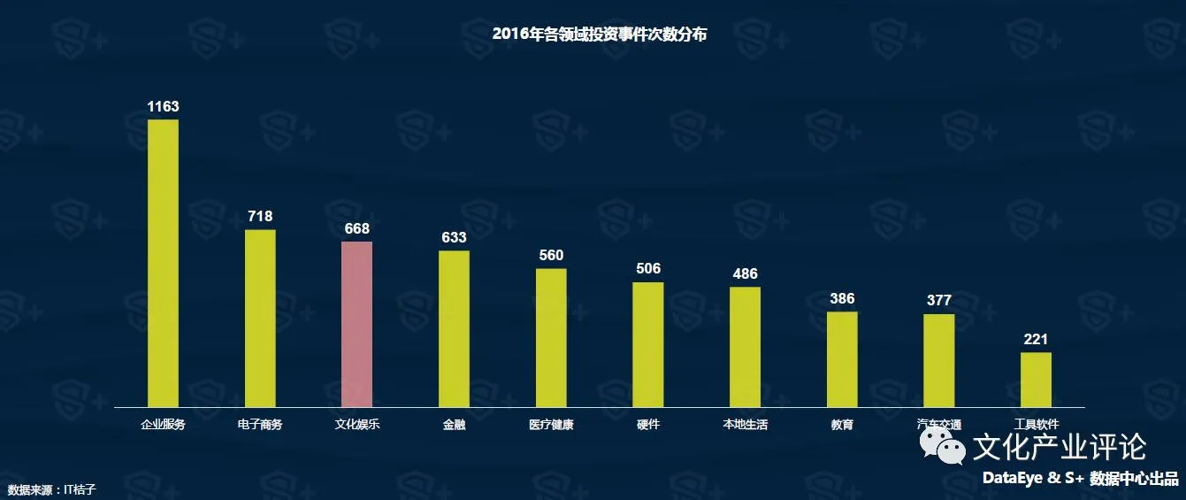 纵观2016年文化娱乐投资事件达到668件,行业活跃度依然保持前三位,并购规模和速度继续维持高热度,除了企业服务以外,文化娱乐细分领域二次元、移动电竞等新领域也将成为新的布局方向。