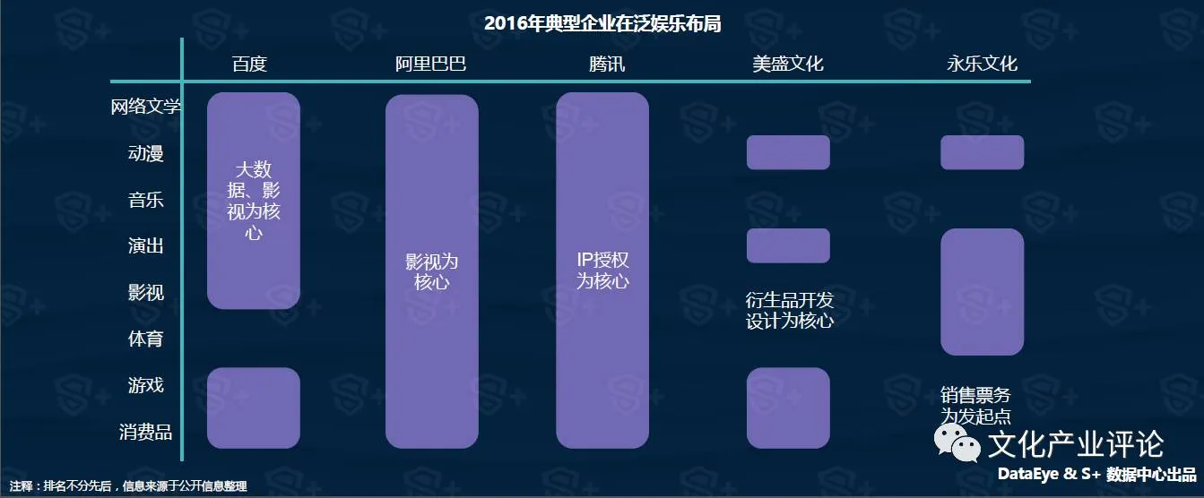 各企业在泛娱乐板块上布局各有侧重点