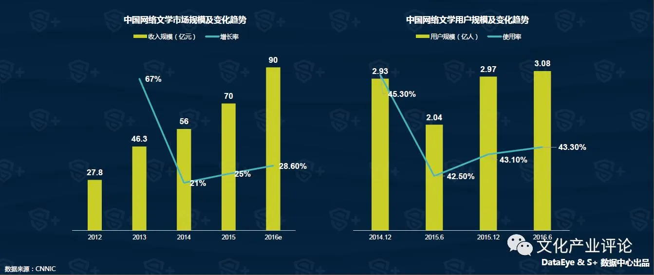 截至2016年6月,网络文学用户规模达到3.08亿,较去年底增加1085万,继续保持微弱增长趋势。目前大多数网络文学集团都拥有独立的IP衍生合作部门,盈利模式也从过去的单纯依靠用户付费转变为影视内容生产和用户付费并存的多元盈利模式。
