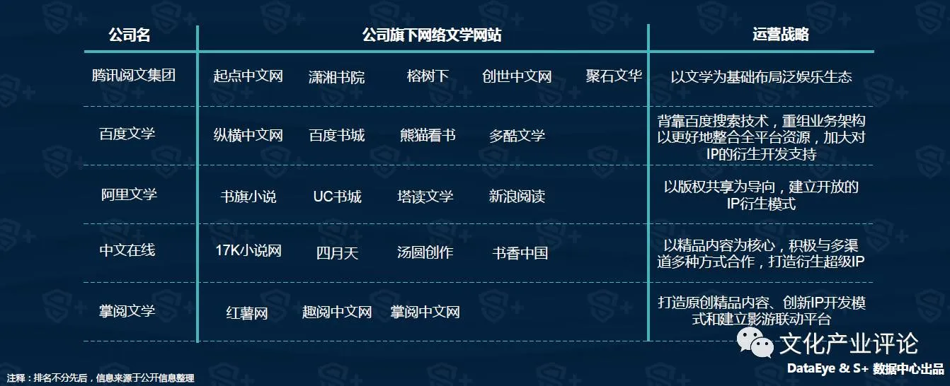 腾讯完成对盛大文学的收购后,网络文学市场从各自为政逐步走向一超多强的格局。从体量上看,腾讯系成为无可置疑的第一。除通过资本运作依然保持传统优势的掌阅文学外,能够与腾讯系匹敌的玩家就只有百度和阿里巴巴各自通过整合成立的百度文学和阿里文学了。