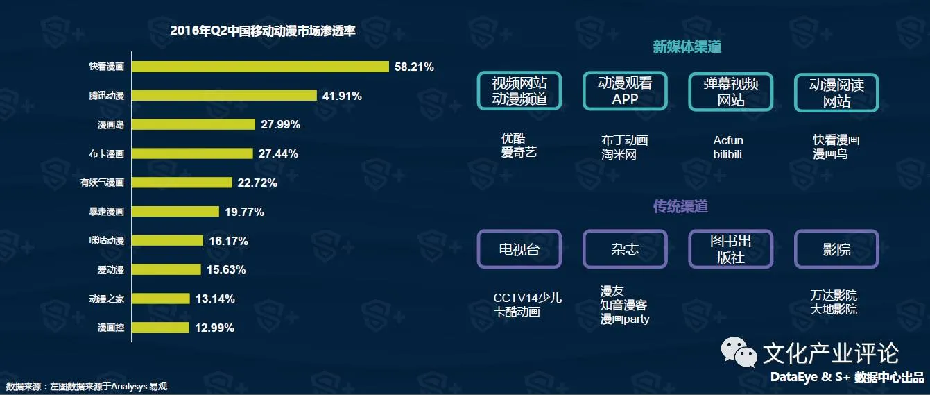 较传统的媒体渠道,新的媒体渠道能让动漫爱好者不受时间和空间的限制阅读动漫,同时互联网发布平台成本较低,动漫平台为动漫创作者发表动漫产品和交流信息提供了便利。新媒体渠道也成为大量动漫创作者和动漫爱好者的聚集地和交流平台,这有利于优质动漫作品和IP的迅速传播。