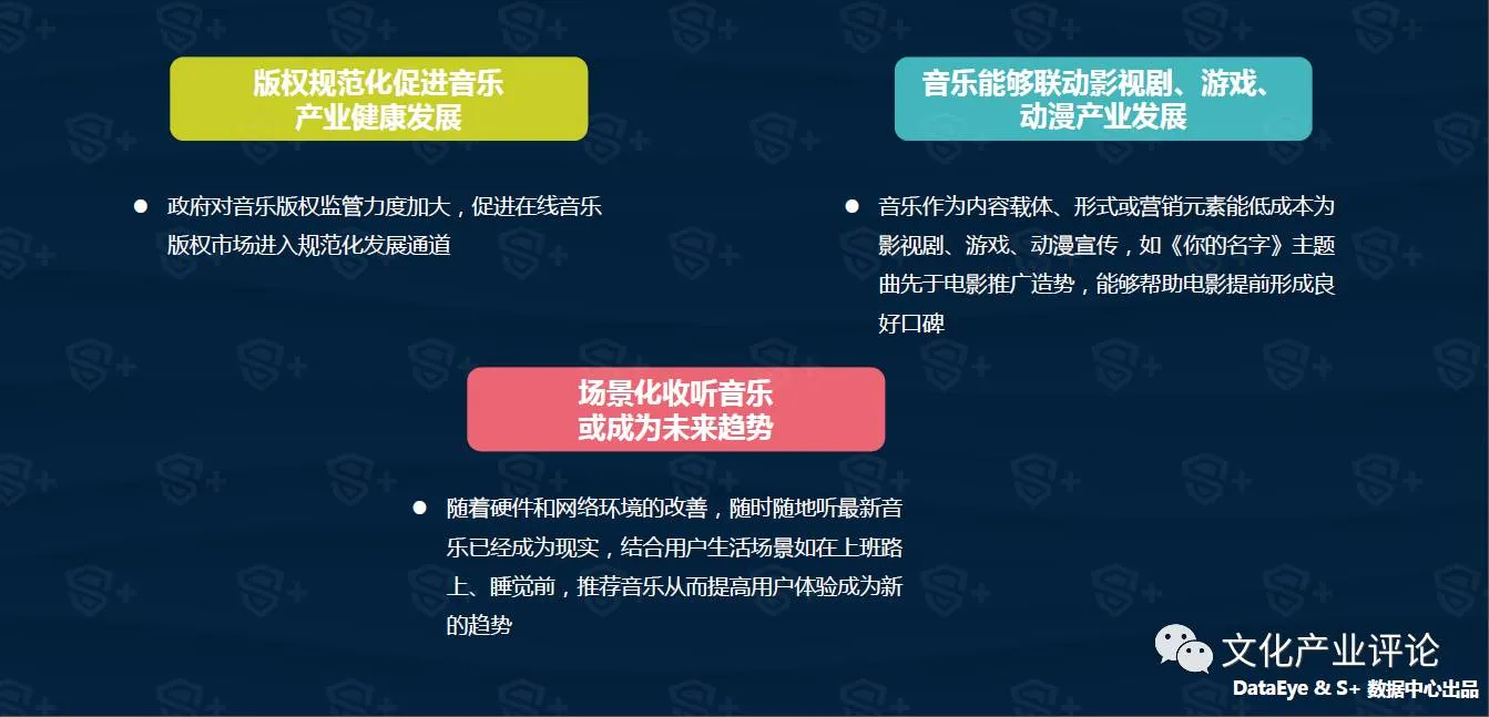 “推进音乐产业发展若干意见”中强调了推动“著作权法”第三次修订,以加强对音乐作品的版权保护。国家版权局颁布了“责令网络音乐服务商停止未经授权传播音乐作品”的专项通知,有利于肃清音乐版权乱像,释放音乐产业发展红利。
