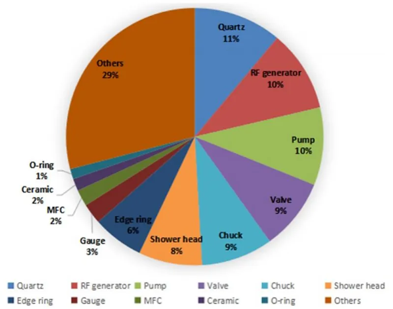 ▲2020 年中国晶圆厂商采购的 8-12 寸晶圆设备前道零部件产品结构