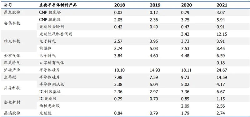 ▲半导体材料公司在电子材料业务领域营收情况(亿元)
