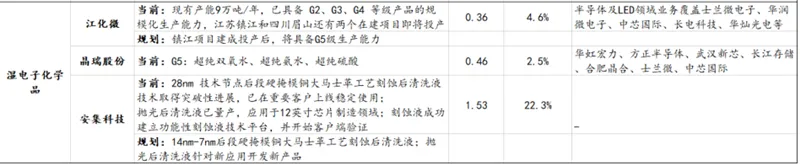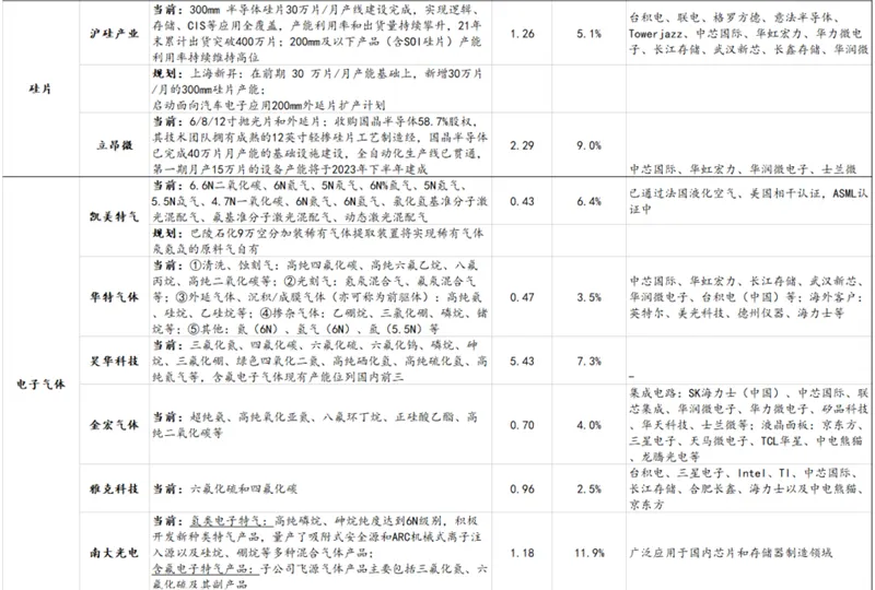 ▲当前部分 A 股半导体材料公司在细分领域的进展及后续规划(研发费用为 2021 年数字,亿元)