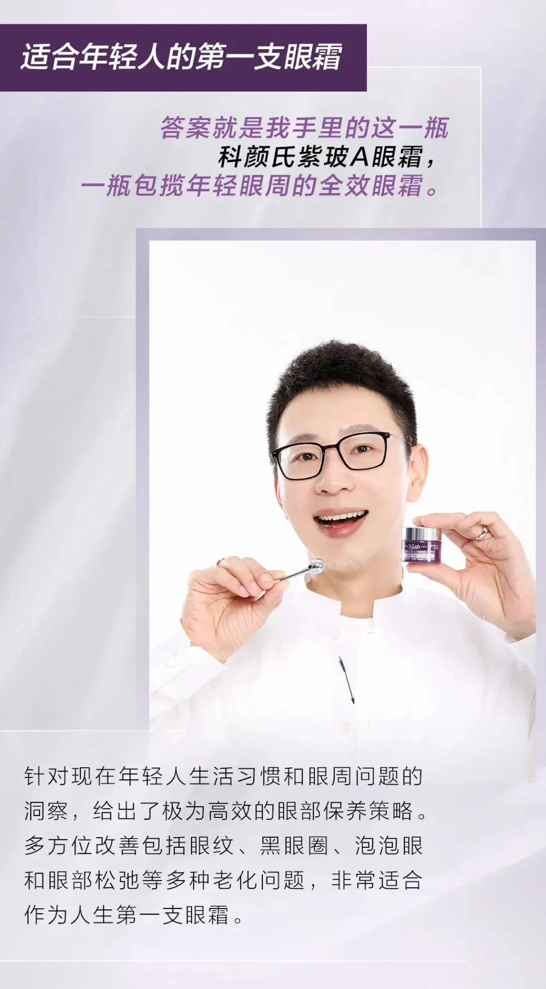 所以必须尽早选对人生第一支眼霜,并坚持使用。那么科颜氏紫玻A眼霜到底是如何做到改善多元眼周问题,适合作为年轻人的第一支眼霜呢?