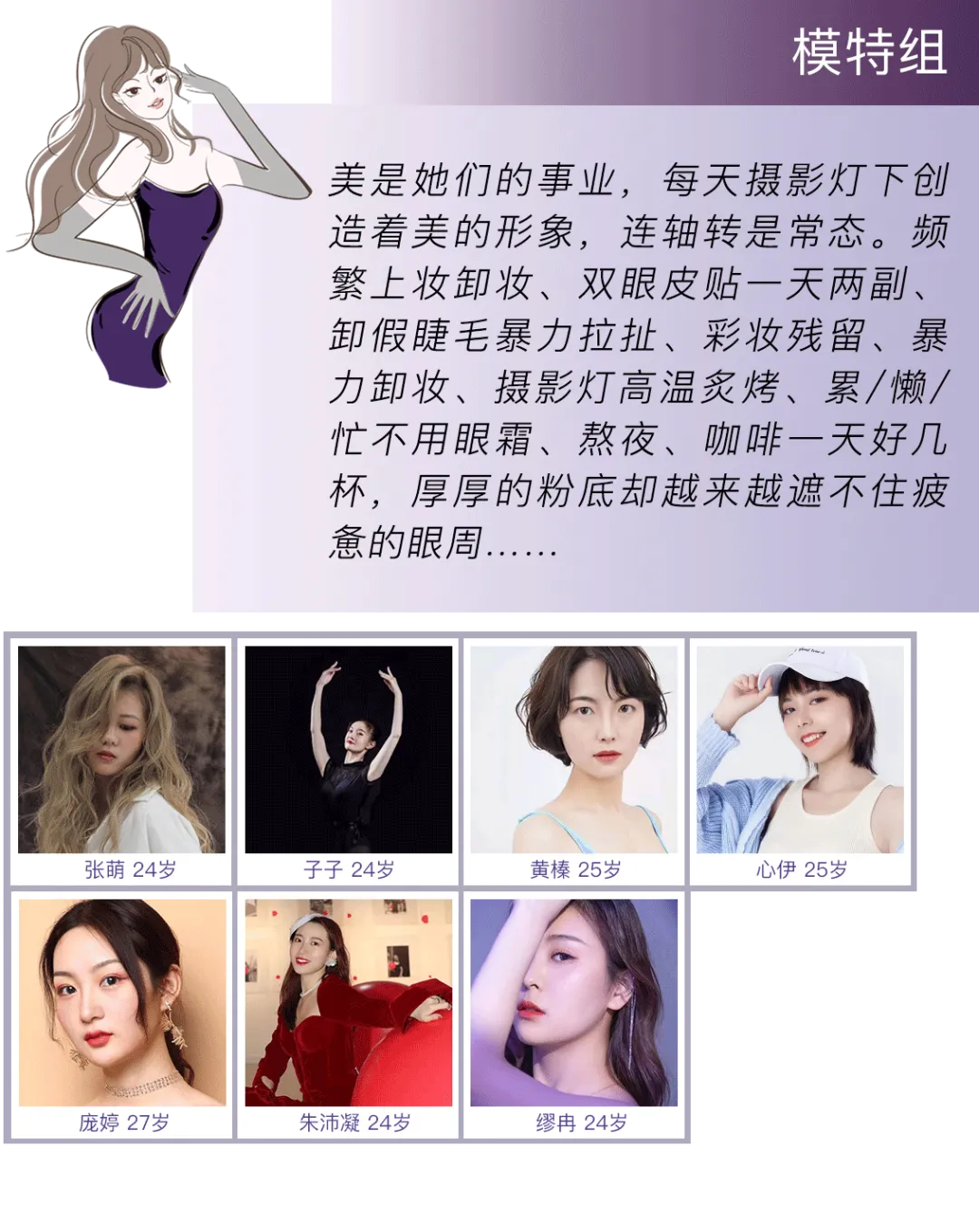 模特组的黄榛之前由于频繁上妆暴力卸妆造成眼周松弛,上眼睑把双眼皮都盖住了;工作太累有时候妆卸不彻底,加上睡眠不好,黑眼圈比较重。而这次试用科颜氏紫玻A眼霜三周时间,很明显黑眼圈、眼周暗沉都淡化了,上眼睑没那么肿也没那么垂了,整个人看起来一下子有了年轻感,最近拍片化妆师都说眼部遮瑕都不用那么厚,拍出来整个人特别有精神。