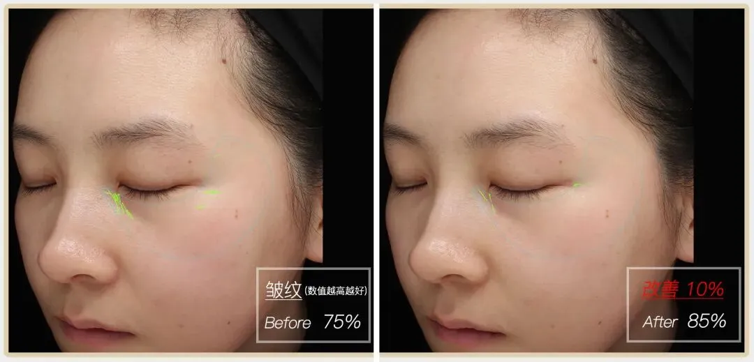再看看具体到每个人眼周最直观的对比图,真的是“眼见年轻”!所有人眼周的整体状态都肉眼可见地提升,多元化问题得到了综合改善。