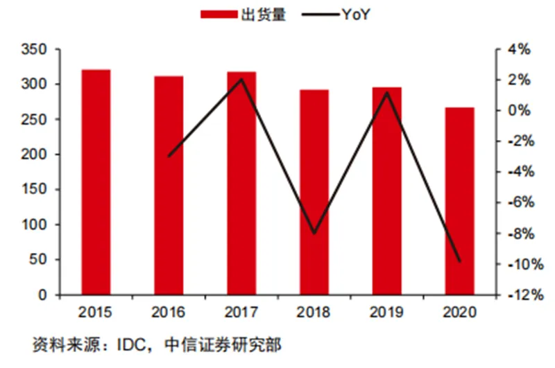 2020年:出货200万台,占三星整体销量约0.7%;2021年:根据三星规划及产业链现状,估算其折叠屏手机有望出货580万台,约占其整体手机销量的2.7%;