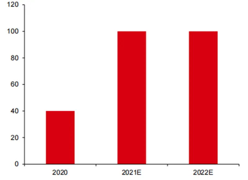 出货量数据:预计22年维持在百万量级。据群智咨询,2020年华为折叠屏手机销量约40万台,全球市占率约15%;我们预计华为2021-2022年将实现销量100/100万台左右,主要受制于主芯片供应,全球市占率分别约13%/7%。