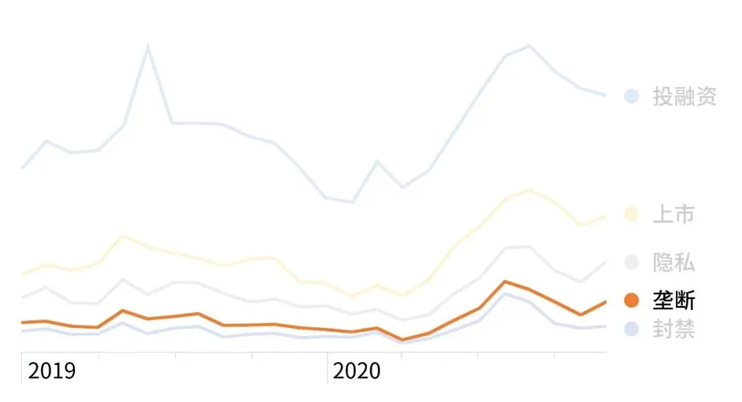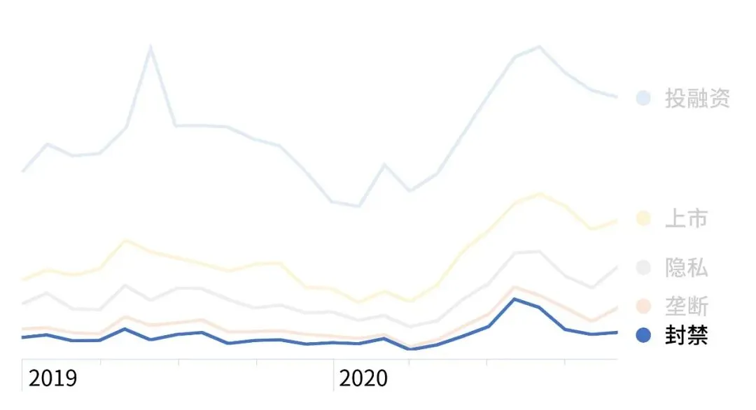 无论是外部摩擦,还是内部监管,落到实处几乎都与「封禁」密不可分,资讯数量抬头趋势明显。