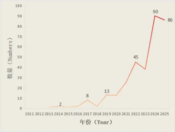 在论文发表方面,2025年(截至11月15日)中国知网收录了86篇关于场景理论的相关论文。可以看出,中国场景相关研究在过去5年中论文数量有明显增长。