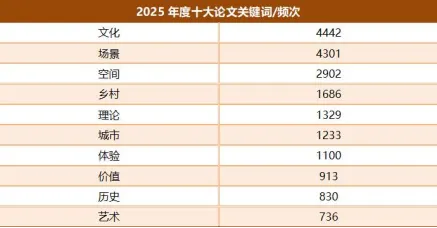 在研究主题上,2025年场景研究紧扣国家战略导向,研究全方位拓展,涵盖文化强国、乡村振兴、数字经济、文旅融合、场景传播等核心议题和绿色低碳、虚拟场景等前沿议题。