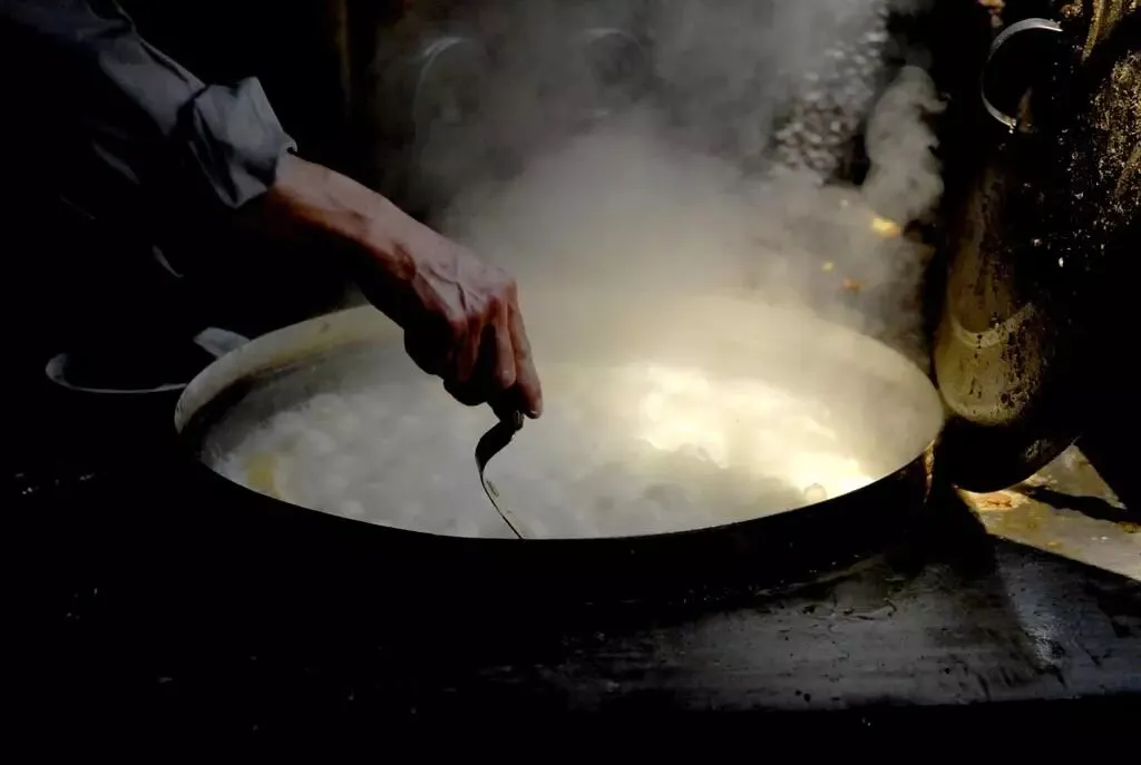 趁着热腾腾的时候最好吃。在生煎还未瘪掉之前,咬破面皮,把滚烫的甜甜的汤汁吸入口腔,然后从小口加入醋或者辣油,我向你们保证,即使是山珍海味也比不上这种美味。