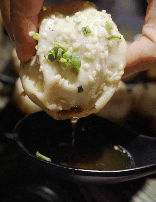 褶子朝下的底板煎得脆脆的,蘸辣油和醋还能吃出另一种风味。总之,喜欢老派生煎的,可以尝试。