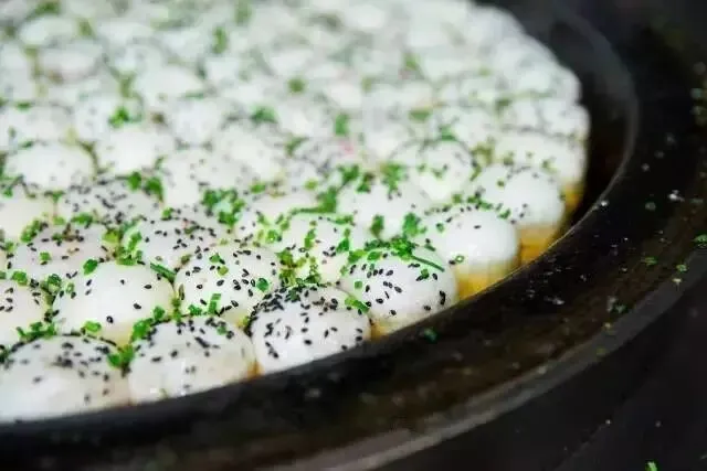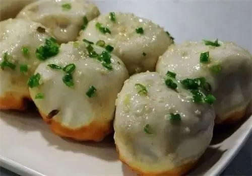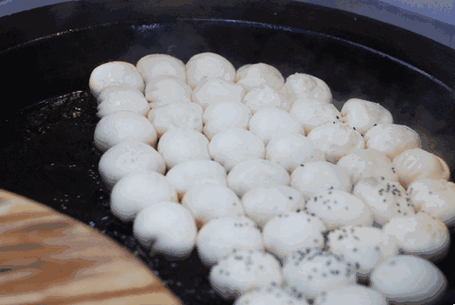 生煎大名是生煎馒头,由于没有经过蒸笼,直接下锅油煎,所以叫生煎。把包子放入平底锅内加热,等到生煎圆鼓鼓起来,淋一次水,等到水蒸气把面皮蒸熟后,生煎便可出锅。一个个挨得紧紧的生煎如白白胖胖的小馒头,任性一撒的葱花和芝麻更使得活色生香。