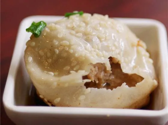 生煎包的馅料继承了汤包,咸中带甜的猪肉馅中添加猪皮冻。吃得时候得还借用汤包“先开窗,后喝汤”的吃法,要不然一股热汁喷在邻桌脸上,基本要友尽了。