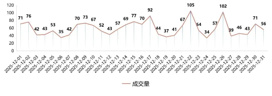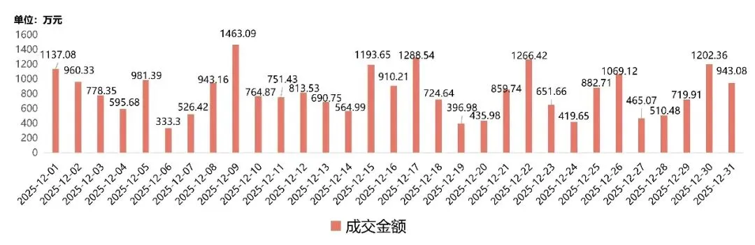 从月成交的数据维度分析,12月场内共成交车辆1828台,与上月成交数量持平,日均成交量58台,总成交金额约为25244.57万元,成交均价约13.8万元。
