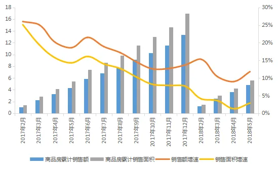 图:2017-2018年5月全国商品房销售情况