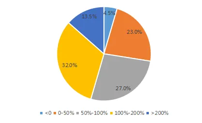 图:54.5%的TOP200房企净负债率在100%以内
