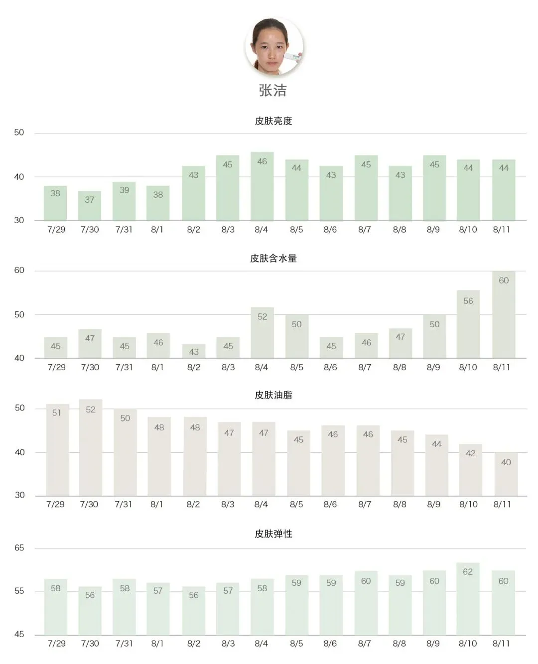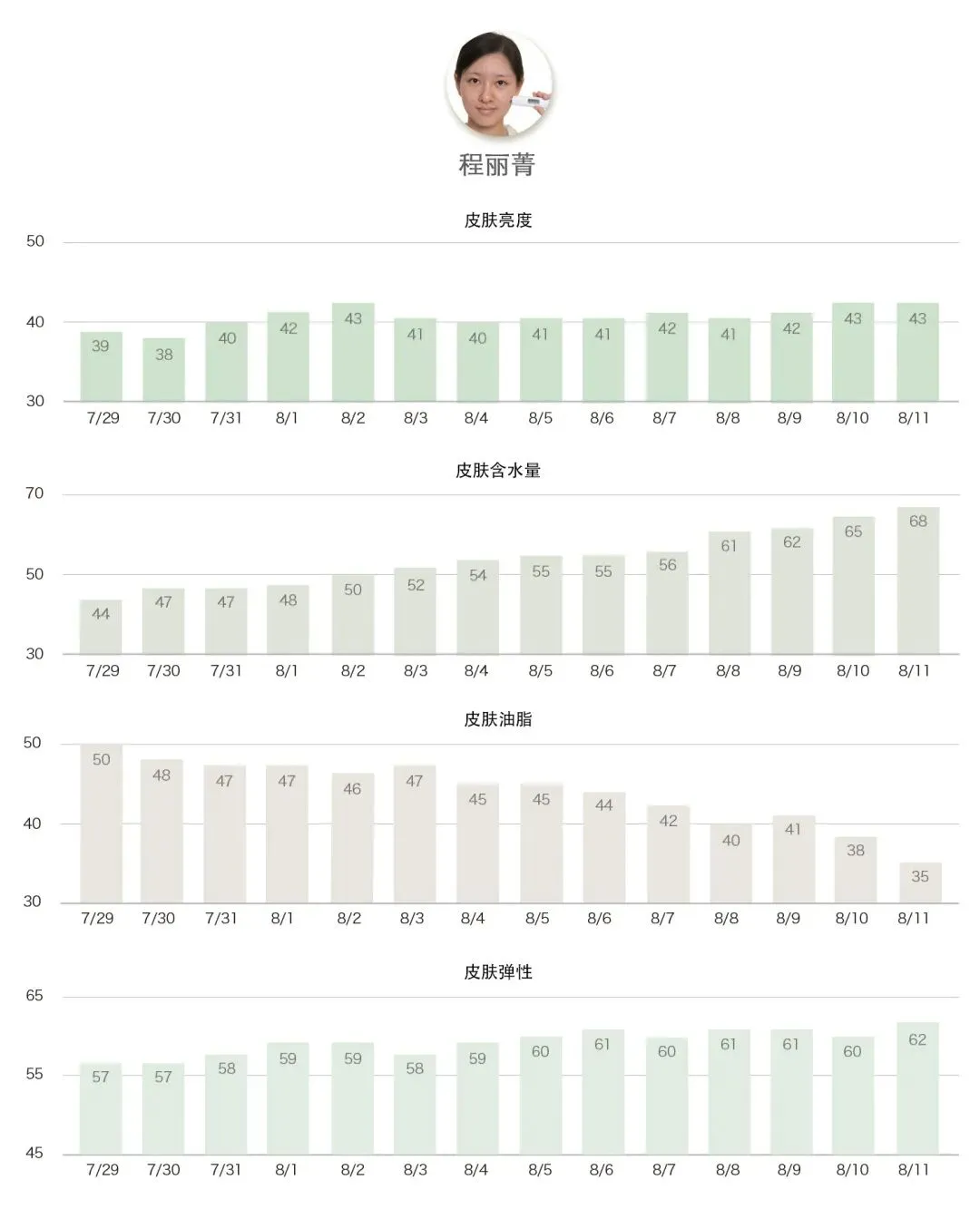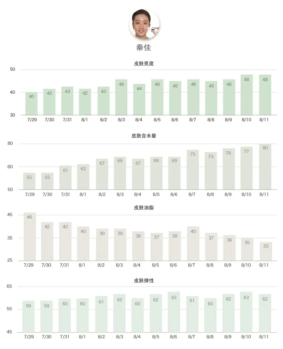 稳赢的力量——各项指标稳步提升,带来综合肤质的全面上升。
