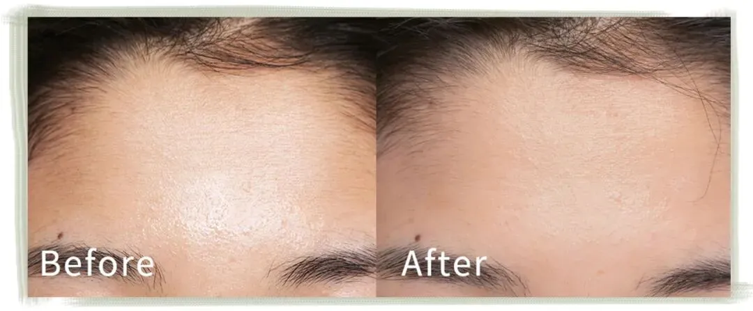 额头闭口、粉刺得到有效控制,皮肤变得更加光洁透亮。灵芝水湿敷帮助产品进一步渗透,令舒缓消炎成分直达肌底,当肌肤吸收通道被打开以后,后续灵芝修护精华能更好地吸收并发挥作用,微生态失衡状况得到改善,皮肤有害菌无法在表皮着床繁衍,整个皮肤微生态屏障开始向良性发展。