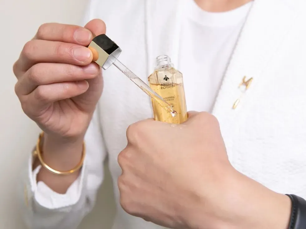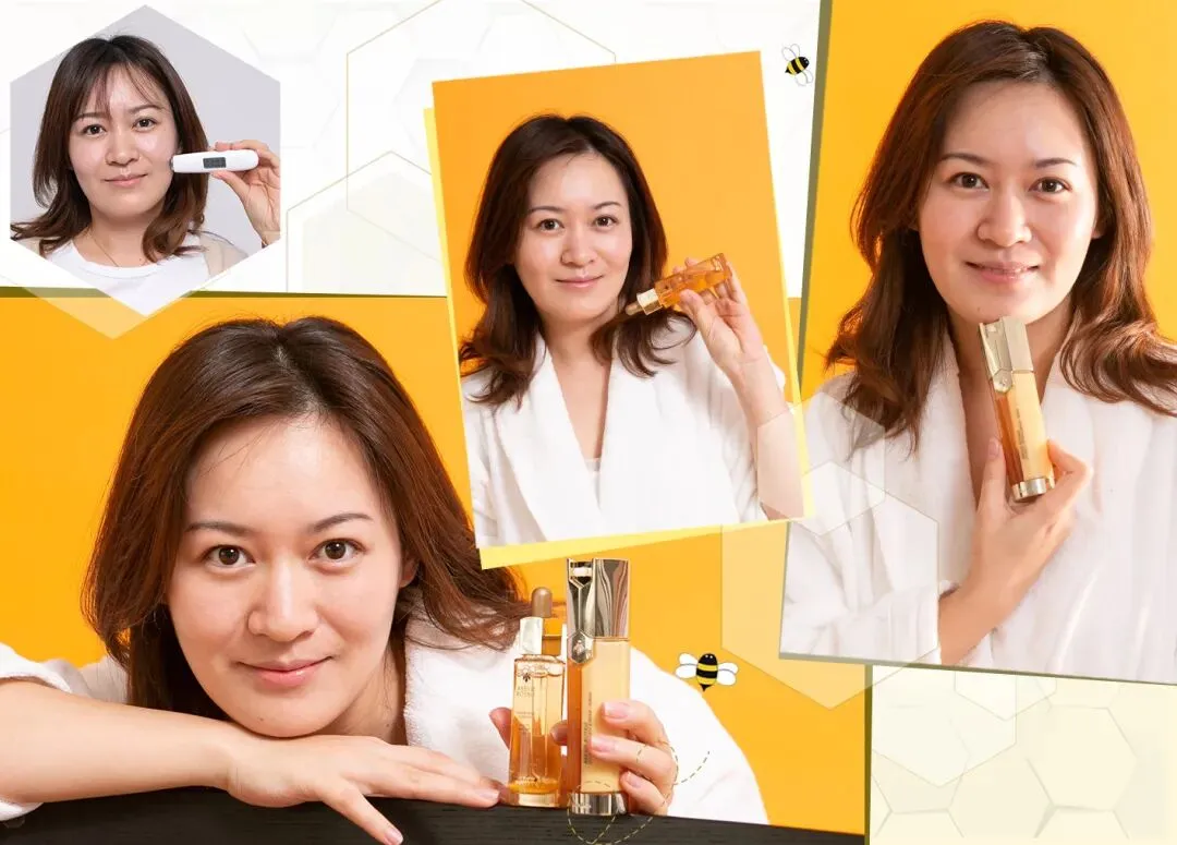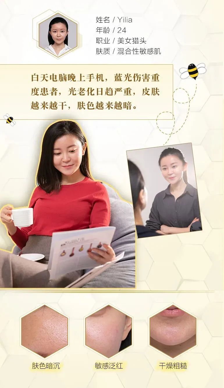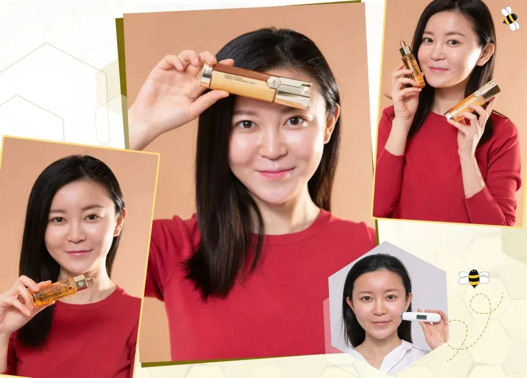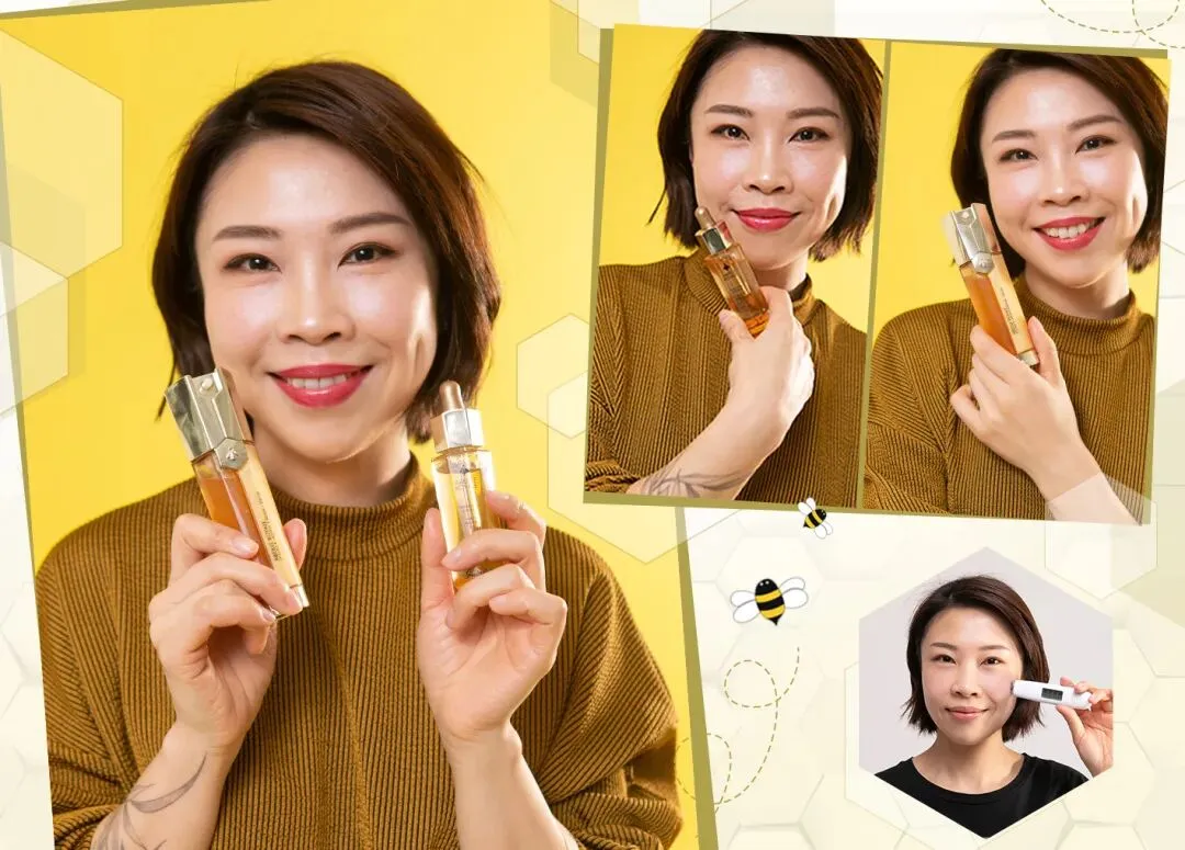 金蕾和我说,她现在已经着了帝皇蜂姿系列的魔,自己又去入手了面霜和眼霜,连每次化妆都习惯+1滴黄金复原蜜在粉底液里,出来的底妆都更贴合精致。
