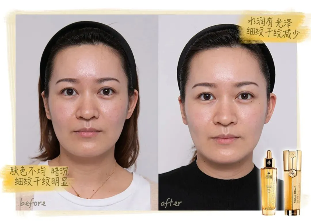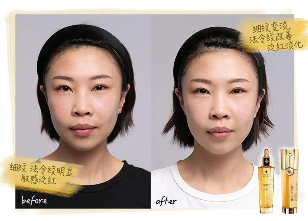 在Michelle的脸上,我们看出娇兰黄金修护组合,不仅适合年轻肌、初老肌,对熟龄肌同样具备优秀的修护抗老实力。坚持使用21天后,不仅肤色整体提亮一个度,黄气减少,同时细纹变淡,法令纹改善,由于皮肤屏障较之前强韧,泛红问题也迎刃而解。