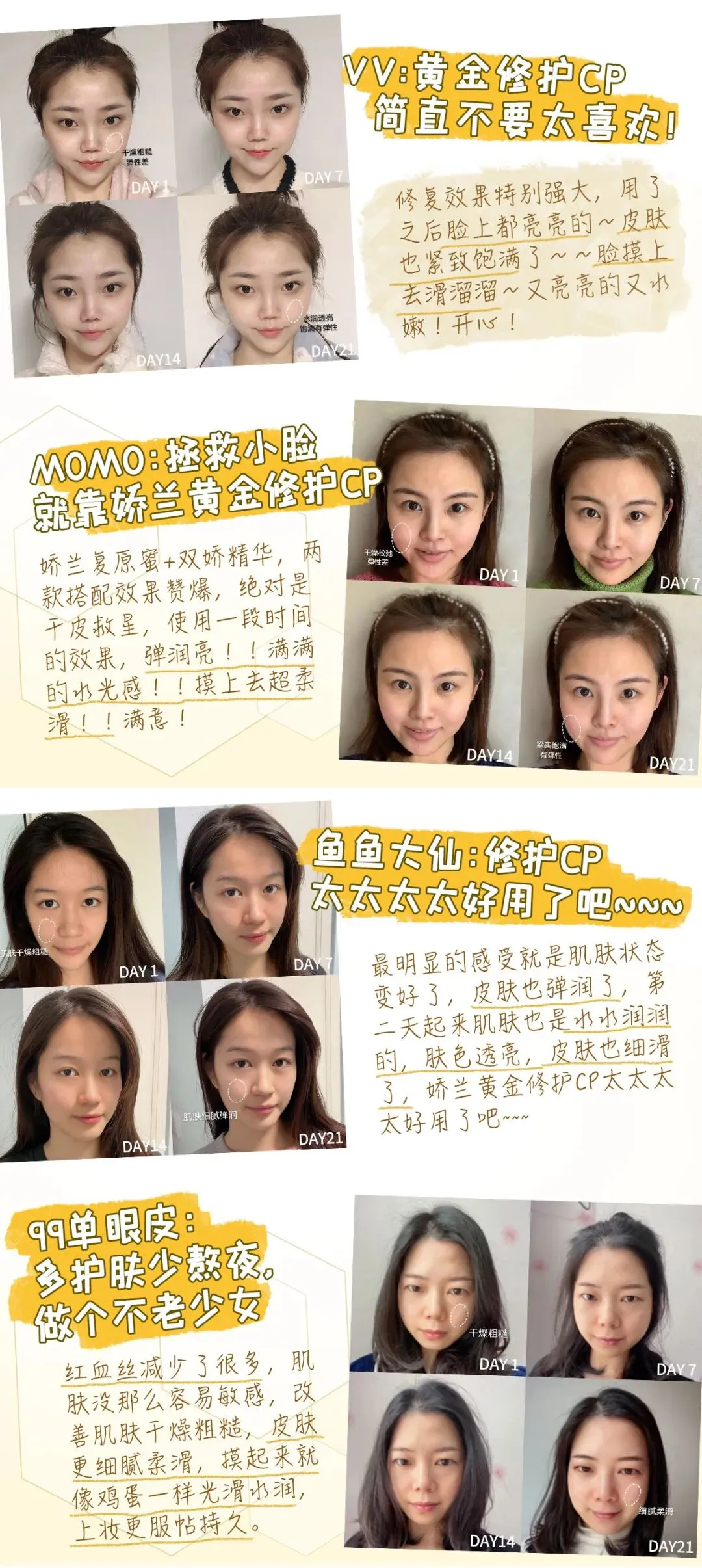 俗话说,修护没到位,一直抗老一直老。针对本期5位双娇女性的高压受损肌,本期《21天》以美之名,发起职场精英高压挑战,传说中的娇兰“黄金修护CP”,能否用卓效修护来定格时光,实现御年轻、愈美丽的承诺?
