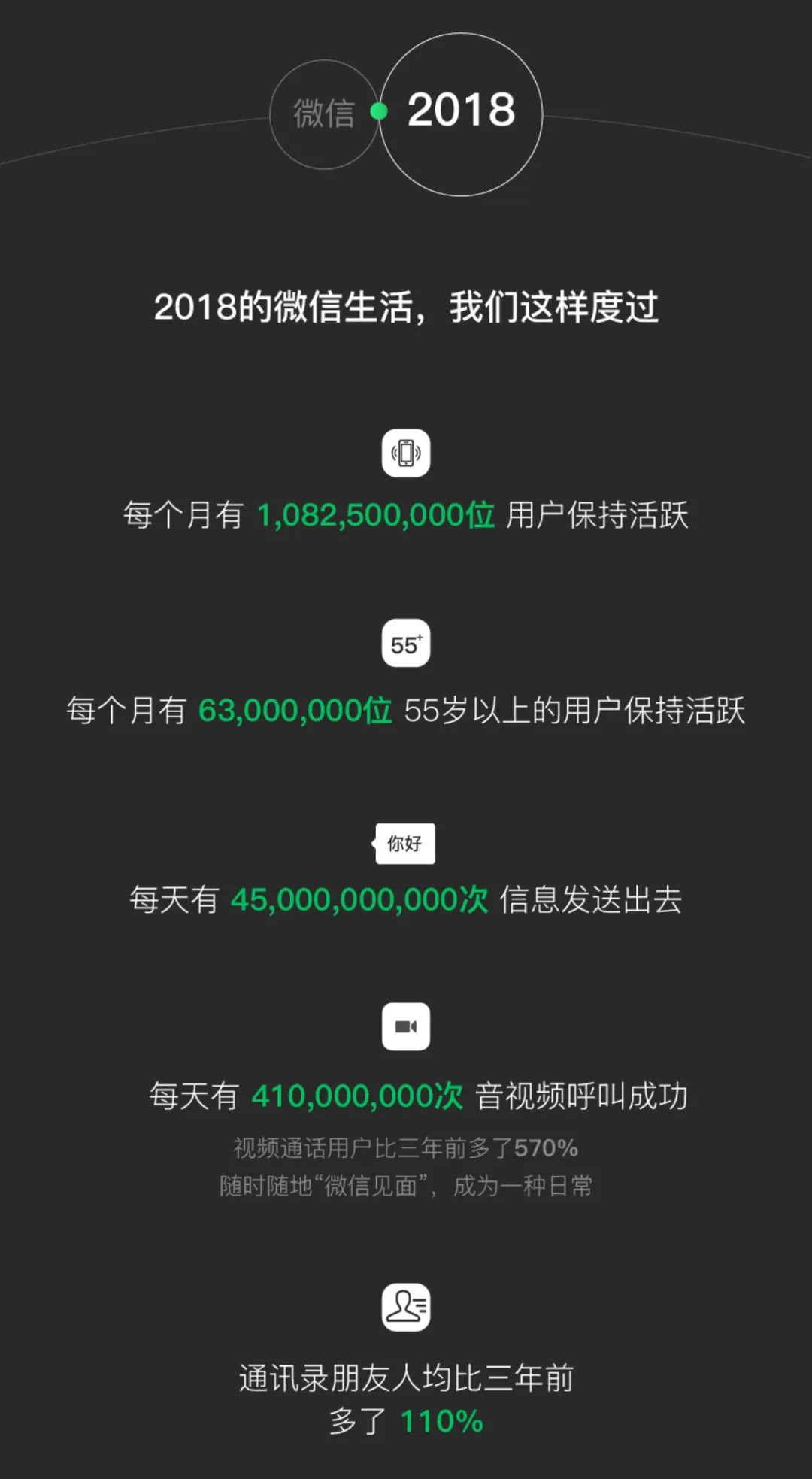 猝不及防,微信发布了 2018 年度数据报告。