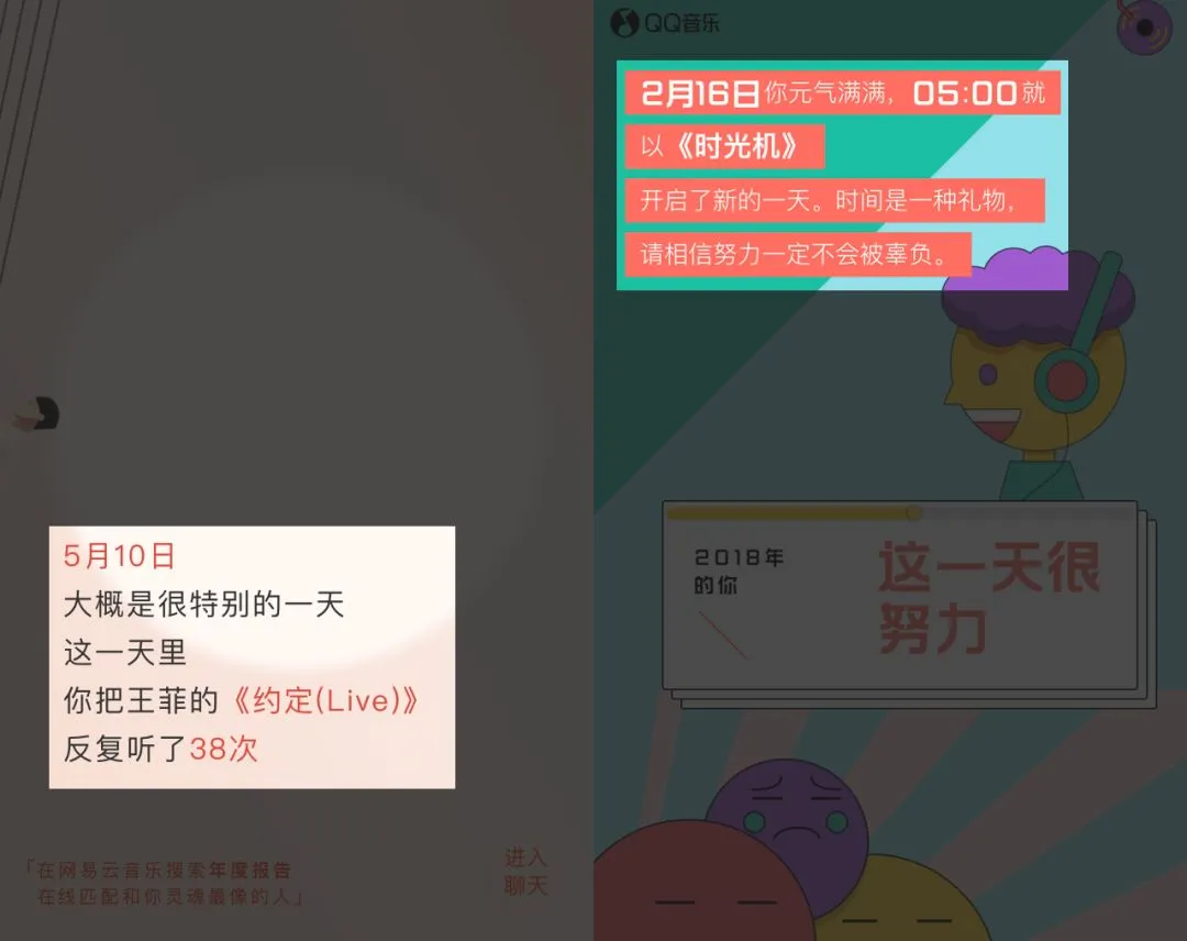 再拿 QQ 音乐、网易云的年度总结来说。