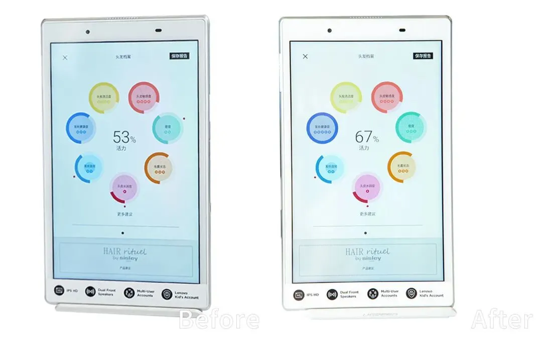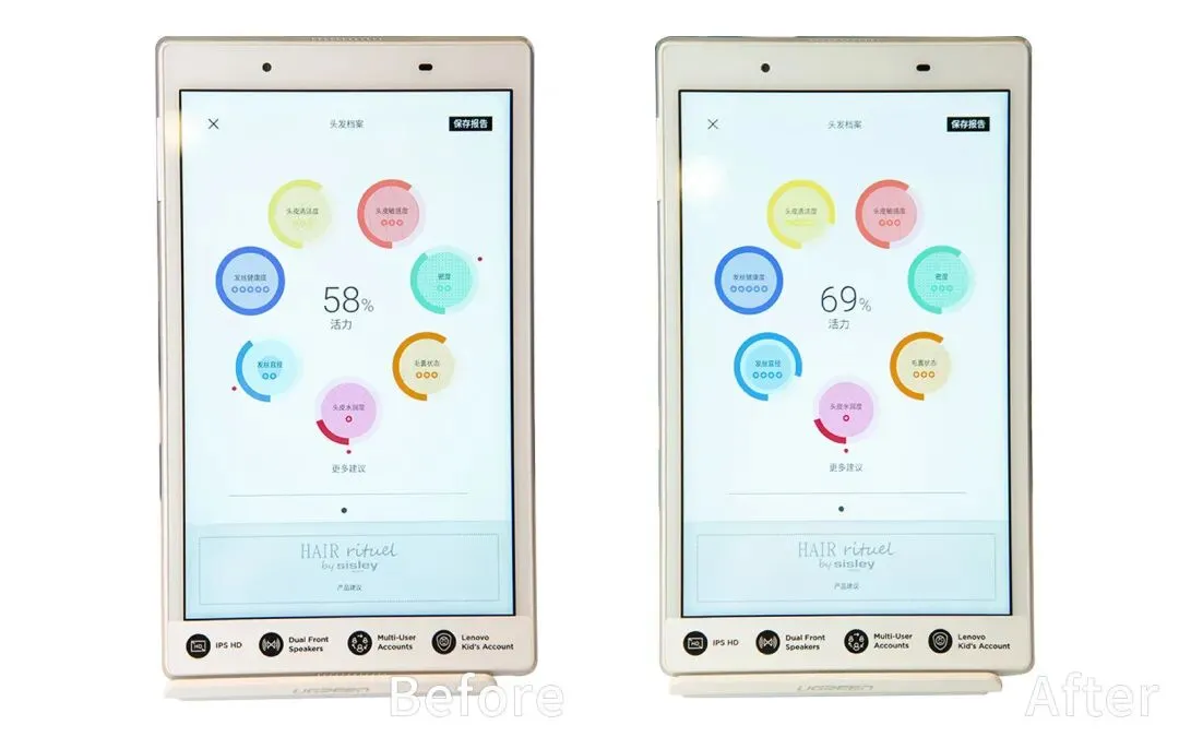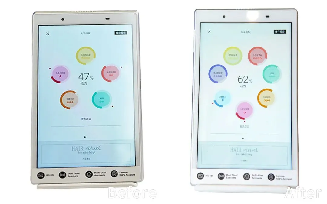 头发整体健康程度提升32%,从数据指标来看,头皮清洁度特别是头皮敏感大幅改善,因此头皮放大图里面,我们能看到头皮不再发红,出油也减少了。这里再次强调大家一定要日常重视头皮护理,头皮健康是头发健康的基础。