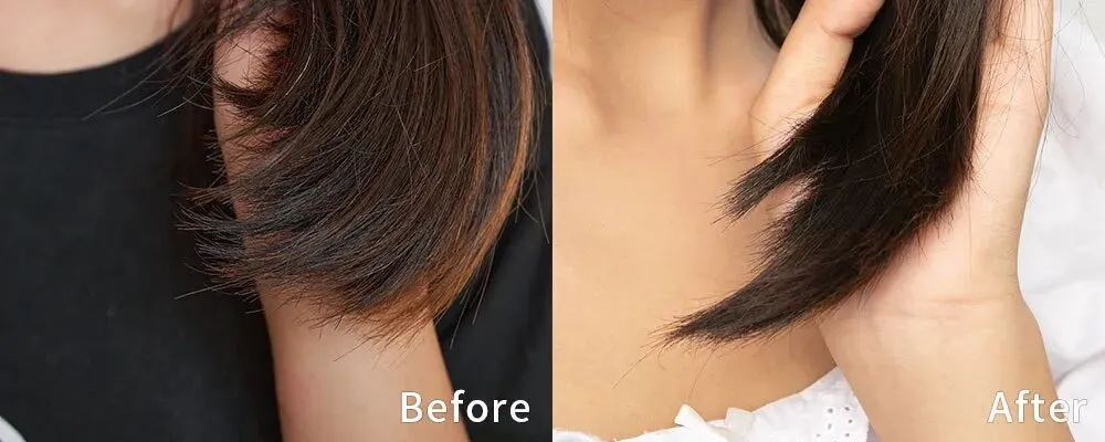 对比闺蜜,小V的发尾特别干,发梢干枯分叉,加上发色的关系显得发质很差,常年处于炸毛状态,毫无发型可言。“这次使用希思黎钛黑瓶,除了常规用在头皮上,我还会用一点点在发尾,反正完全不油,而且抚平毛糙的能力一流,感觉用完之后不仅头发服帖了,也变亮了,而且真的好香好好闻啊!“