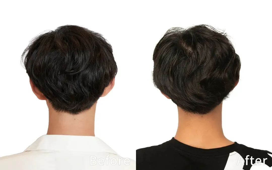 对比原来泛红敏感及油腻的头皮,21天之后,头皮舒敏褪红成果显著,发缝变密以及最惊喜的,头顶的M字脱发显著改善,新头发真的长出来了,希思黎钛黑瓶的生发能力,可圈可点。