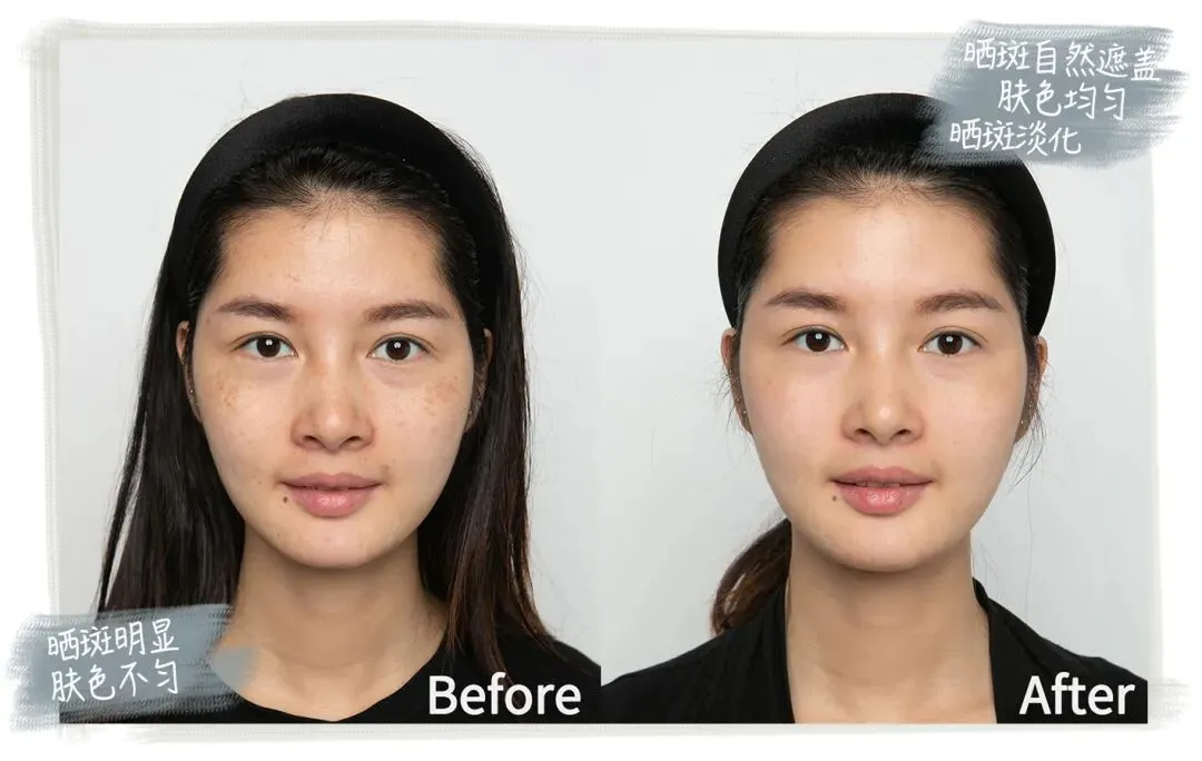 那么问题来了。如何淡斑?靠粉底遮,靠遮瑕盖,但化妆的女生都知道,遮斑还真不是容易事,黄褐斑和雀斑用的遮瑕膏色号就不同,很多手残党根本搞不定。特别对大面积出现的斑点如果靠打粉很容易有假面感。如何才能在社交距离下获得自然、清透的皮肤质感还不见半点瑕疵,有好办法吗?