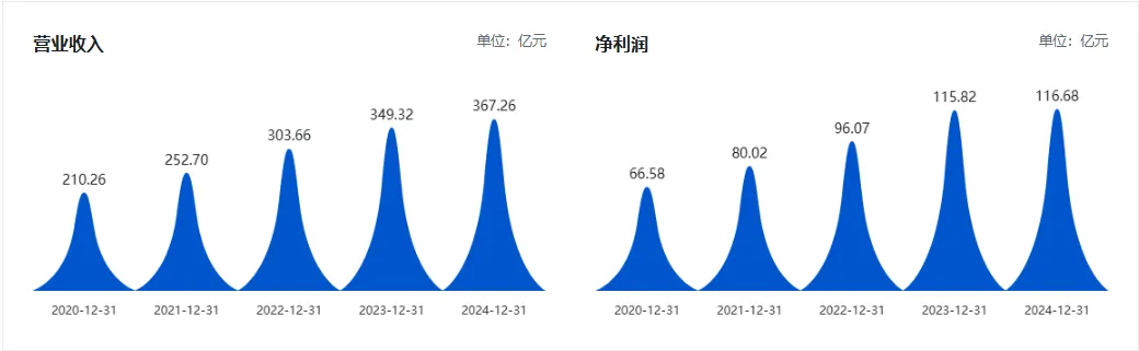 营业收入基本是稳步上升,但是在2024年并未带来净利润的对应增幅,需要关注具体原因。