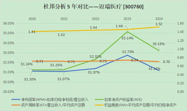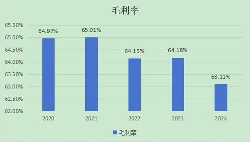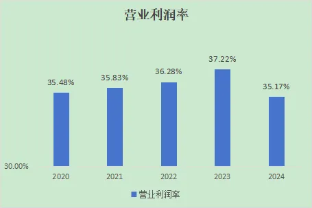 近五年都是稳定在30%以上,很优秀的一项指标,相比2023年的高点,2024年有下降趋势,需持续关注~不过总体来说很优秀!