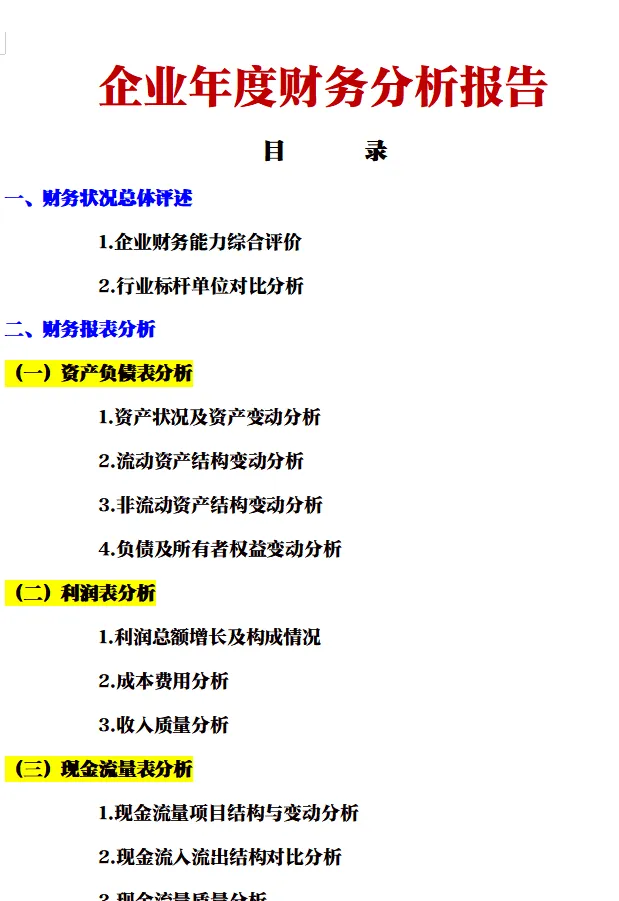 财务分析报告最直观的就是让老板看得懂。财务报告是写给老板看的不是写给审计的。老板关心什么,年底赚了多少,钱花得值不值明年能不能干得更好……所以,年度分析报告要回答三个灵魂问题干了啥:说现状;为啥这样:思对策;。接下来咋干:看未来。