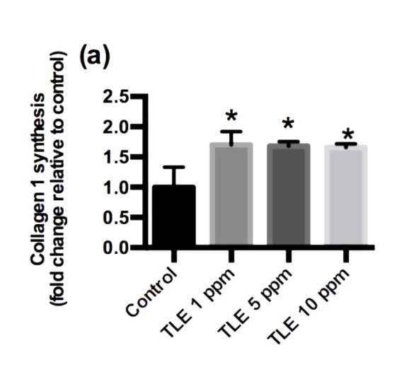 实验证明,百万分之一浓度的塔斯米诺(TLE)使人成纤维细胞胶原再生的能力提升了约70%。
