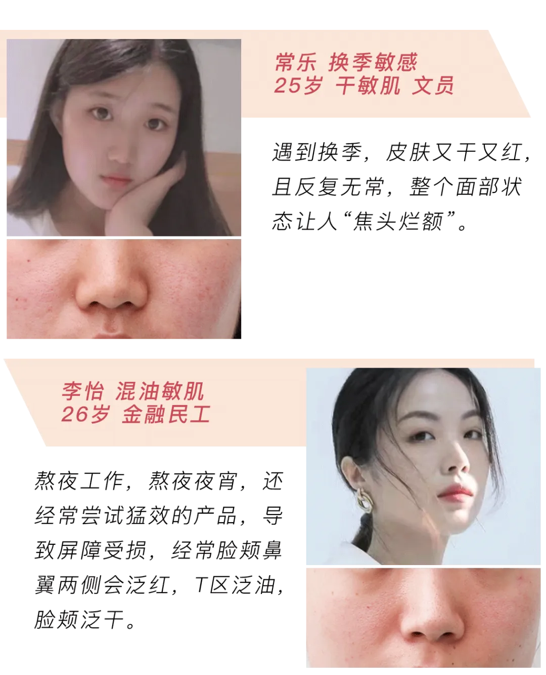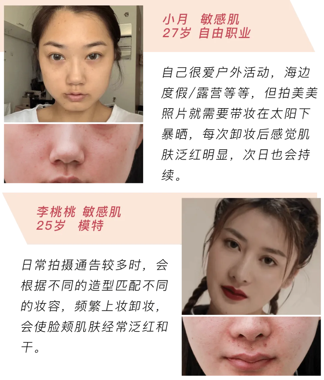 “我原来每次卸妆洗脸都特别红,而且皮肤真的越来越干,敷再多补水面膜都没用。经常突然脸上就红了一块,还特别痒,摸上去又很粗糙,去看专家就说是皮炎,让我别化妆、清水洗脸,可是工作需要真的办不到,整个一恶性循环,感觉脸都要烂了。”