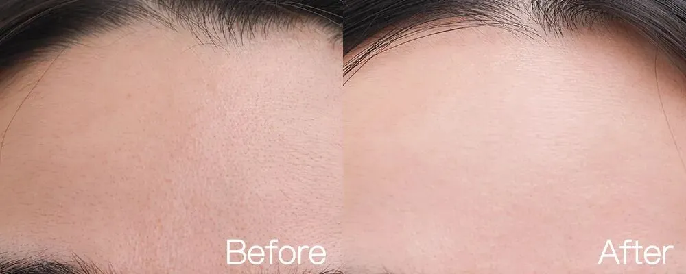 细节图里能看到皮肤在21天之后,开始呈现健康新生的光泽透亮感,肤质也细腻了很多。额头油腻暗沉得到改善,皮肤肉眼可见地变得强韧健康。