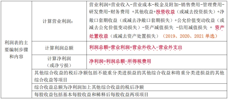 考点 5 利润表的填列