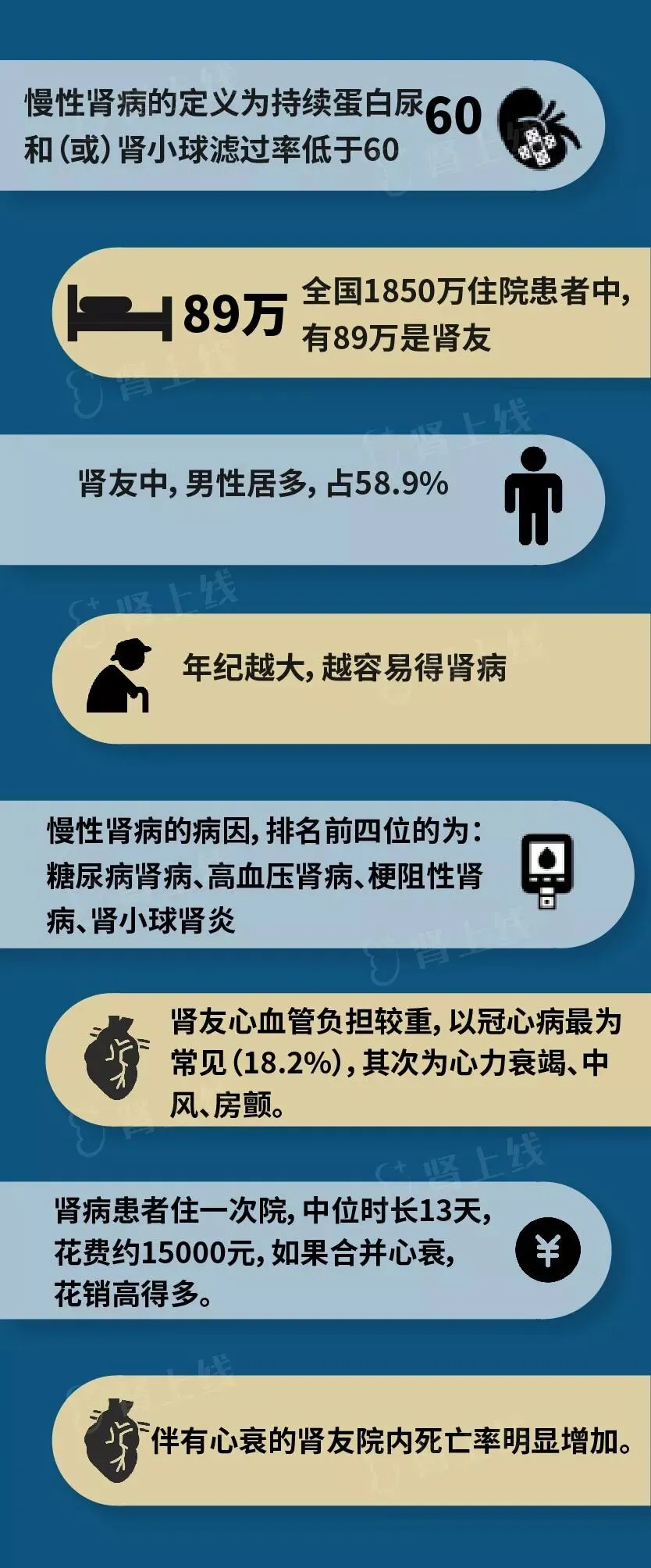 而就在今年3月,著名肾脏病杂志Kidney international 发表了CK-NET的第二份报告(主要基于2015年监测的全国住院患者数据),比第一份更为详细,肾上线将报告要点总结如下。