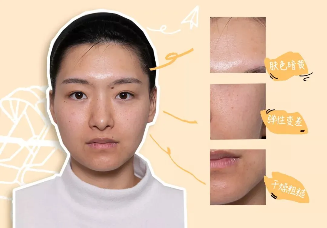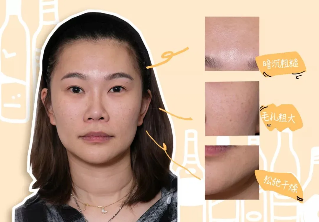 日夜颠倒的工作性质,加上工作需要不得不每天全妆示人,皮肤愈发粗糙暗沉,干燥起皮,粉底都遮不住肌肤疲态,肌肤松弛老化明显。