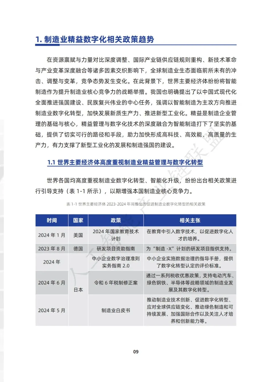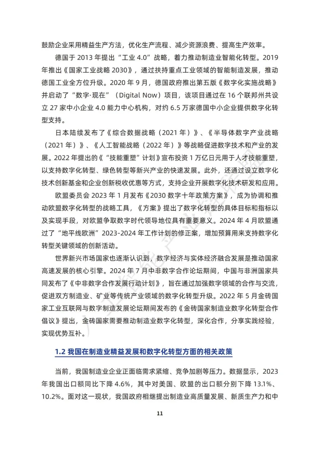 近年来, 我国也明确提出了以中国式现代化全面推进强国建设、民族复兴伟业的中心任务, 强调以智能制造为主攻方向推进制造业数字化转型,加快发展新质生产力、推进 新型工业化。党的二十届三中全会指出,要加快推进新型工业化,培育壮大先进 制造业集群,推动制造业高端化、智能化、绿色化发展。