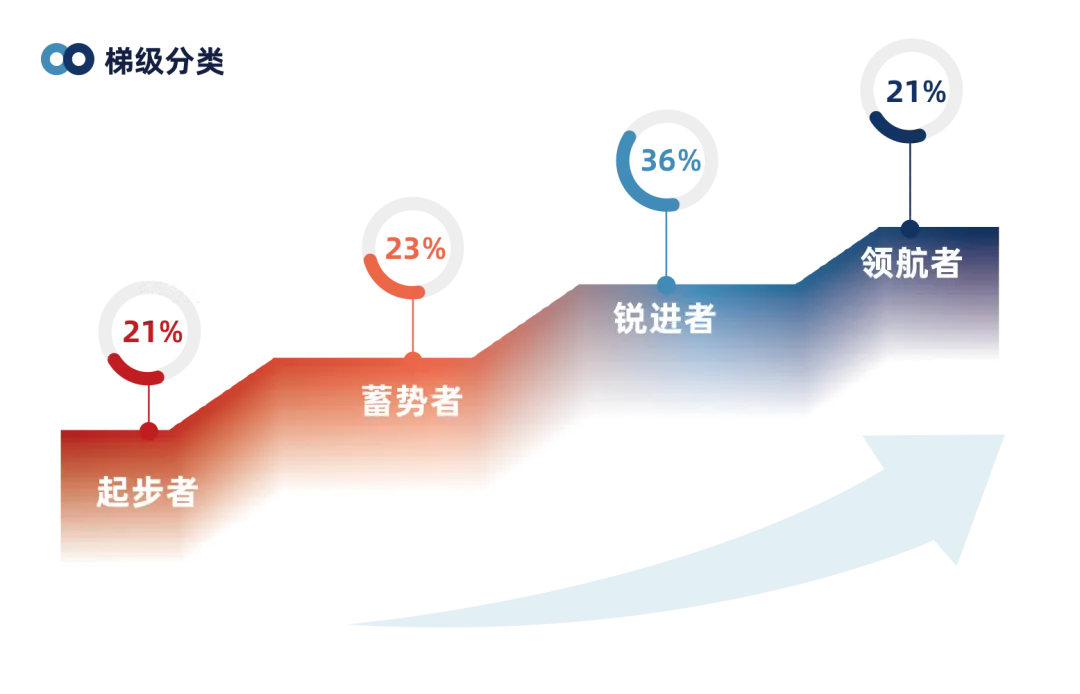 为突破通用气候相关评价框架行业特异性弱、价值链特征不突出的局限,系统评估“30·60企业”4年来气候行动的综合进展,本报告创新构建“气候领导力阶梯”测评体系:以“目标”“策略”“治理”“披露”“行动”五大维度为核心,下设17项二级指标与42项三级指标,形成差异化权重体系,将企业气候行动划分为“领航者”“锐进者”“蓄势者”“起步者”四个级别。