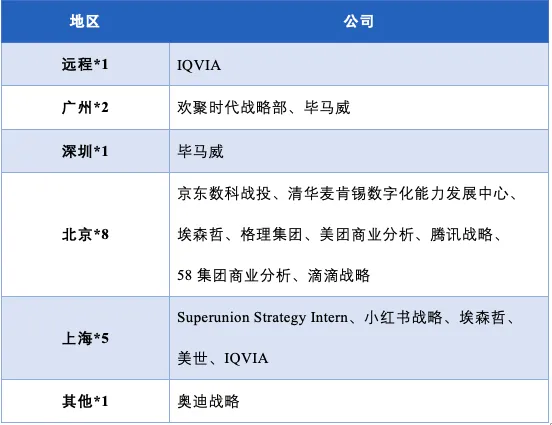 注:对于其他地区中小编未标出实习地点的岗位,大家有兴趣不妨先试着投递。小编如有相关信息,会及时在推送下方留言与大家同步。